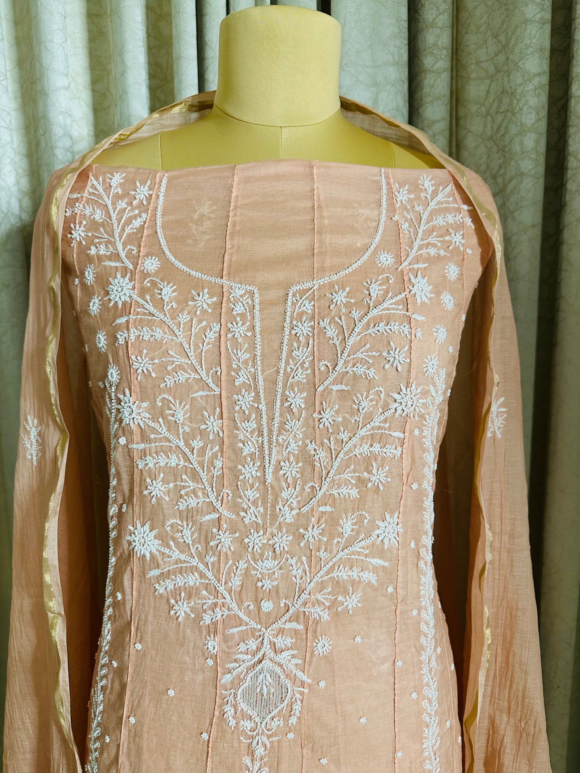 Katdana and Pearl Work Handcrafted Chikankari Pure mulmul Anarkali